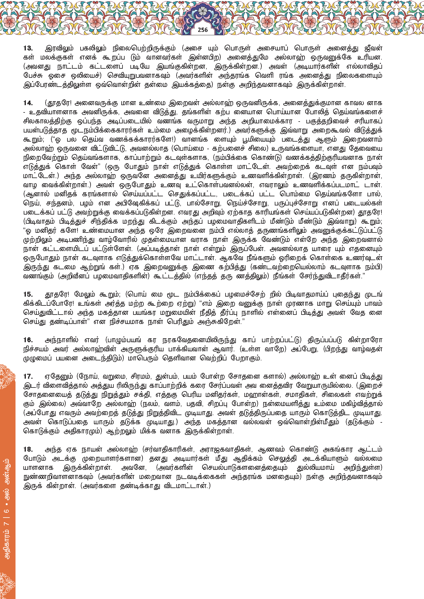 14. Katakanlah (wahai Muhammad), “Patutkah aku mengambil pelindung selain daripada Allah yang mencipta langit dan bumi dan Dia-lah yang memberi makan dan bukan Dia yang diberi makan?” Katakanlah, “Sesungguhnya aku diperintahkan supaya menjadi orang yang pertama sekali menyerah diri kepada Allah (muslim), dan (aku diperintahkan dengan firman-Nya), “Jangan sekali-kali engkau termasuk dalam golongan orang musyrik itu.”