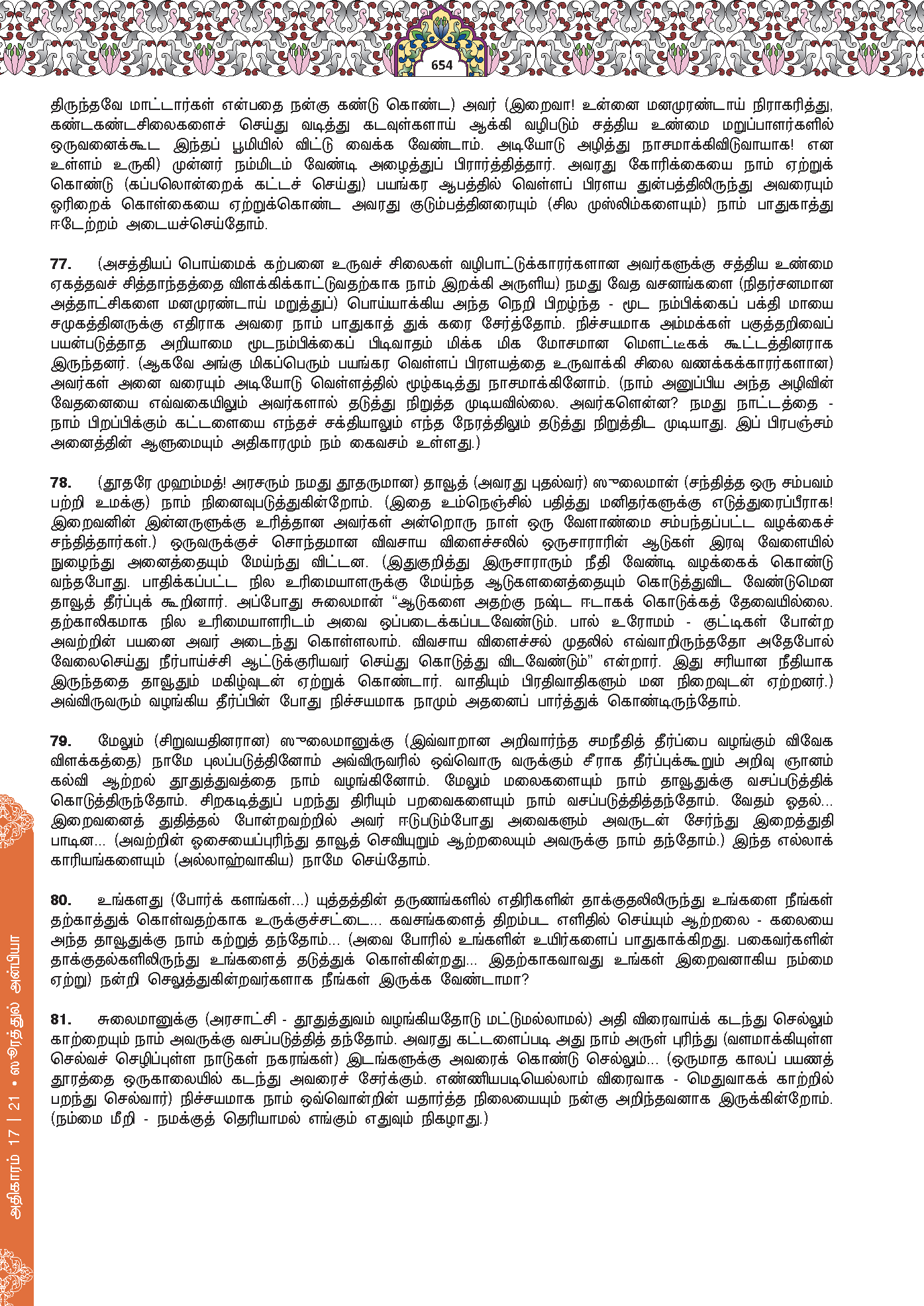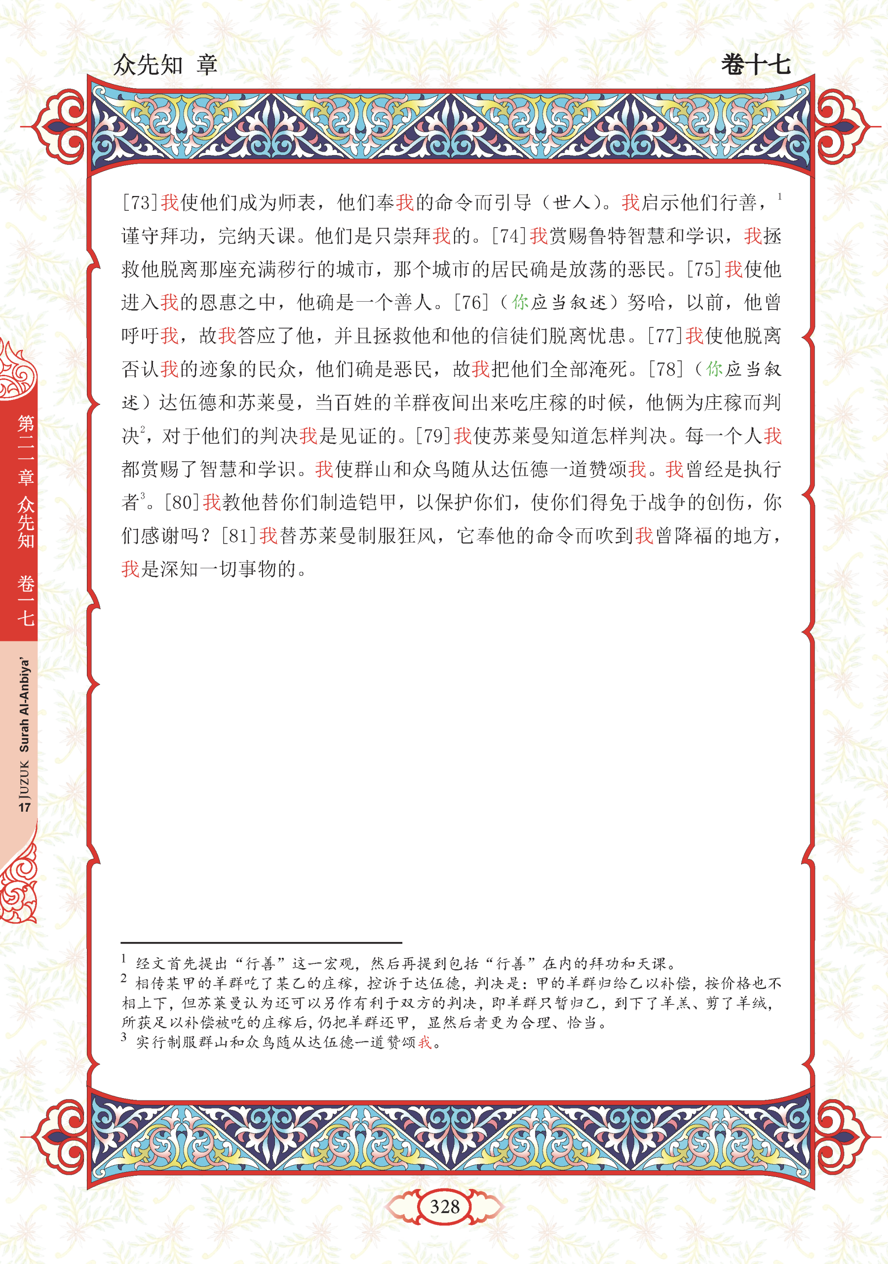 79. Maka Kami beri (Nabi) Sulaiman memahami hukum yang lebih tepat bagi masalah itu, dan masing-masing (daripada mereka berdua) Kami berikan hikmah kebijaksanaan dan ilmu (yang banyak), dan Kami tundukkan gunung-ganang dan burung-burung memuji Kami bersama-sama dengan (Nabi) Daud. Kami sememangnya berkuasa melakukan semuanya itu.