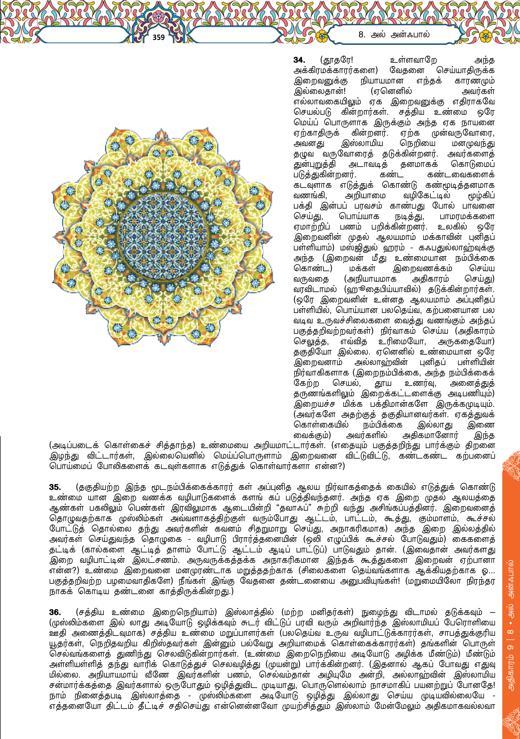 34. Dan mengapa Allah tidak mengazab mereka sedangkan mereka menyekat (orang Islam) daripada (beribadah) di Masjidil Haram, padahal mereka bukanlah orang yang berhak menguasainya (kerana mereka kafir musyrik)? Sebenarnya orang yang berhak menguasainya hanyalah orang yang bertakwa, tetapi kebanyakan mereka tidak mengetahui.