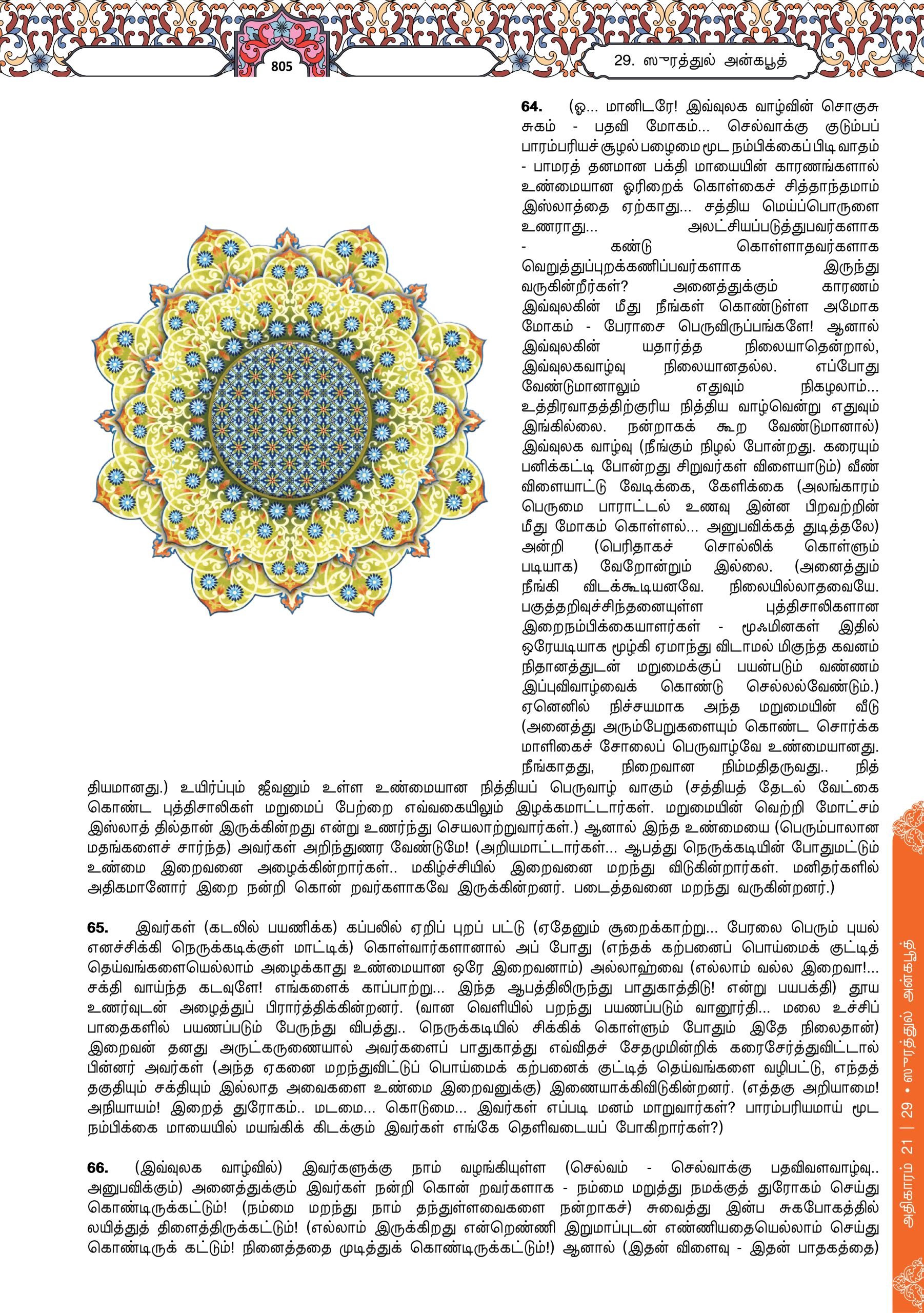 69. Dan orang yang berusaha dengan bersungguh-sungguh kerana memenuhi kehendak agama Kami, sesungguhnya Kami akan memimpin mereka ke jalan-jalan Kami dan sesungguhnya (pertolongan) Allah benar-benar bersama orang yang berusaha membaiki amalannya.