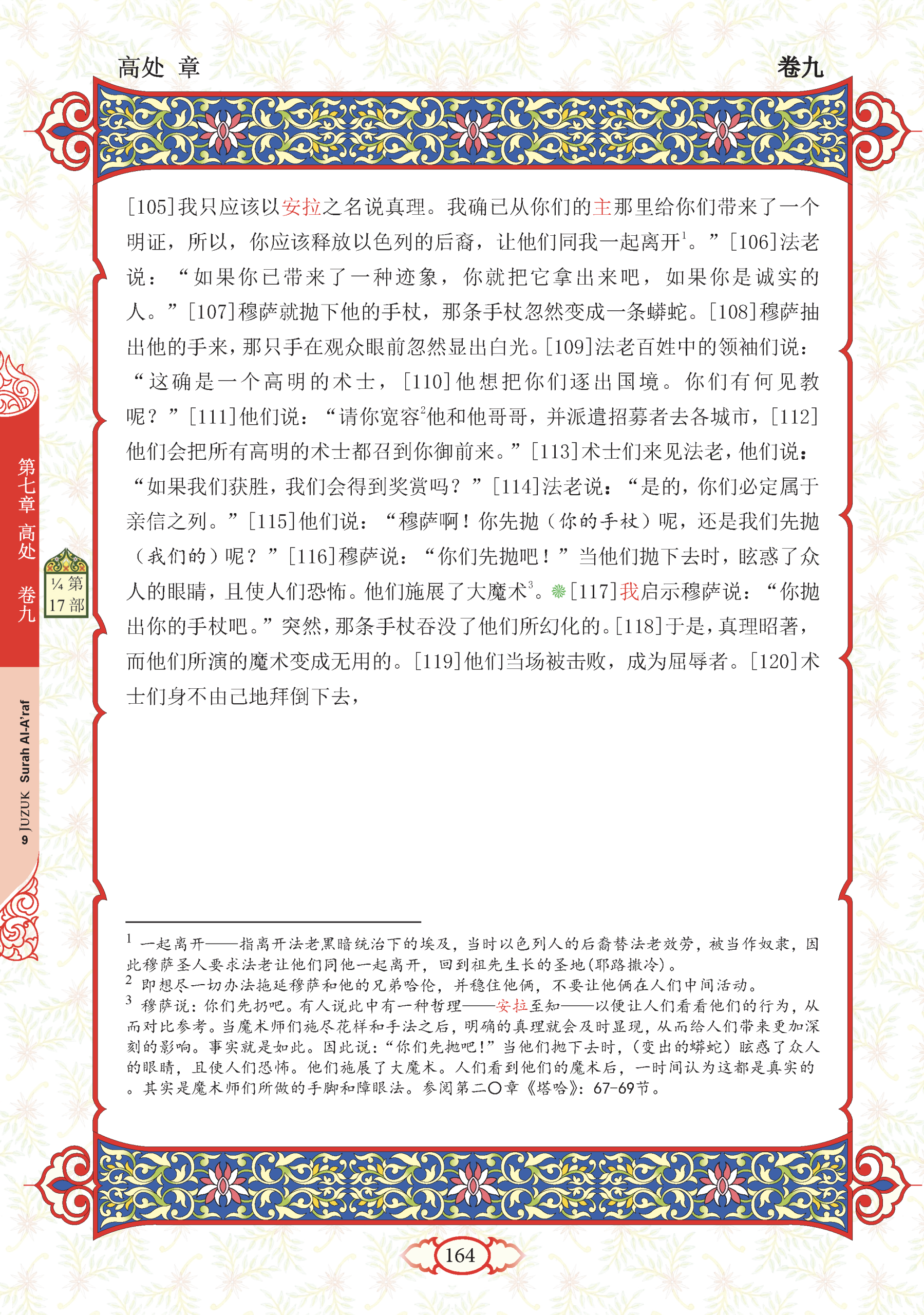 105. “Semestinya aku tidak mengatakan sesuatu terhadap Allah melainkan yang benar. Sesungguhnya aku datang kepada kamu dengan membawa keterangan yang nyata daripada Tuhan kamu. Oleh itu, bebaskanlah kaum Bani Israel menyertai aku (ke Palestin).”