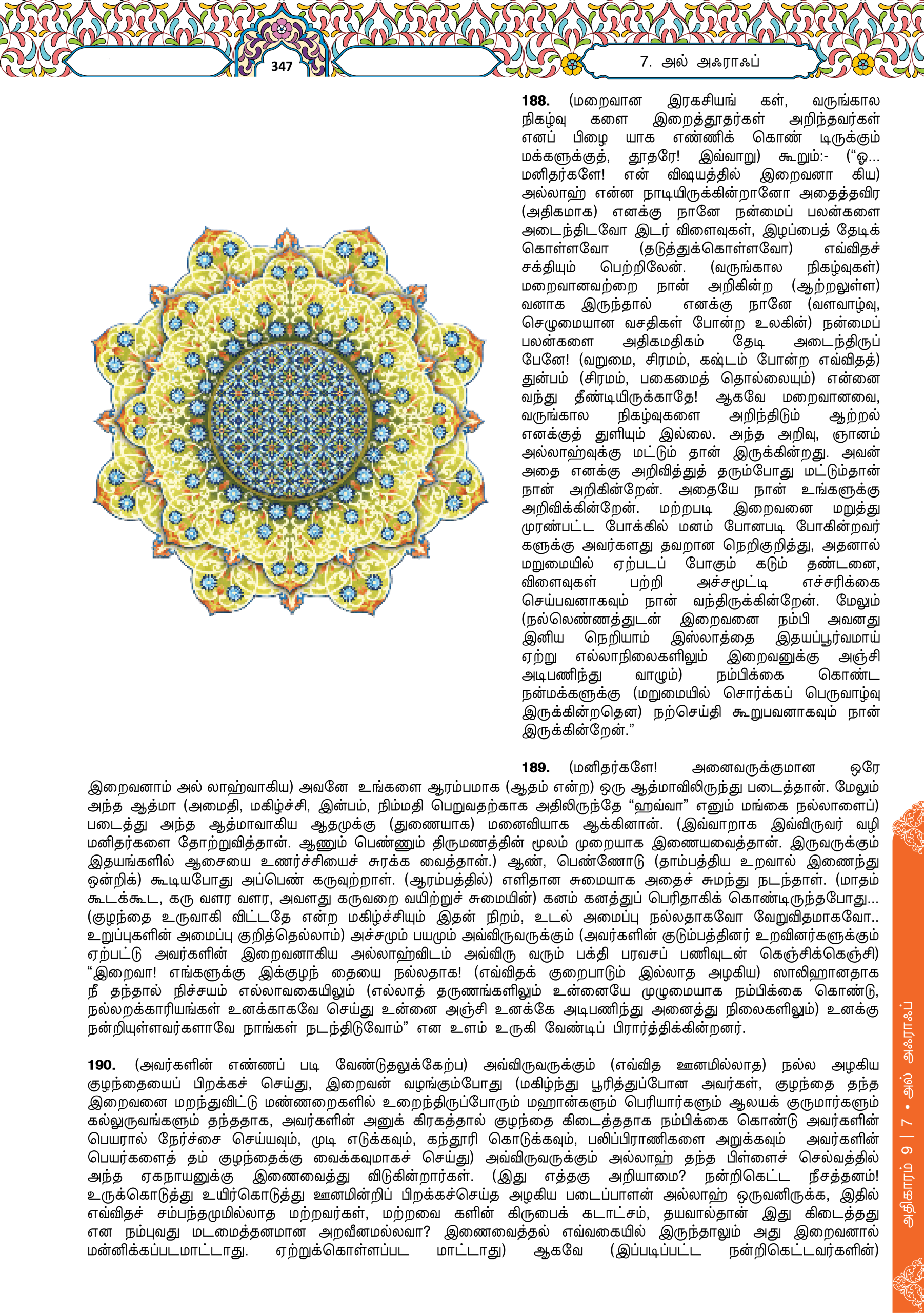 188. Katakanlah, “Aku tidak berkuasa mendatangkan manfaat bagi diriku dan tidak dapat menolak mudarat kecuali apa yang dikehendaki Allah. Kalau aku mengetahui perkara yang ghaib, tentulah aku akan membuat kebajikan sebanyak-banyaknya dan (tentulah) aku tidak ditimpa kesusahan. Aku ini tidak lain hanyalah pemberi amaran (bagi orang yang ingkar) dan pembawa berita gembira bagi orang yang beriman.”