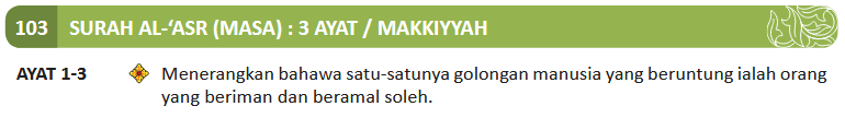 3. Kecuali orang yang beriman dan beramal soleh dan mereka pula berpesan-pesan dengan kebenaran serta berpesan-pesan dengan kesabaran.