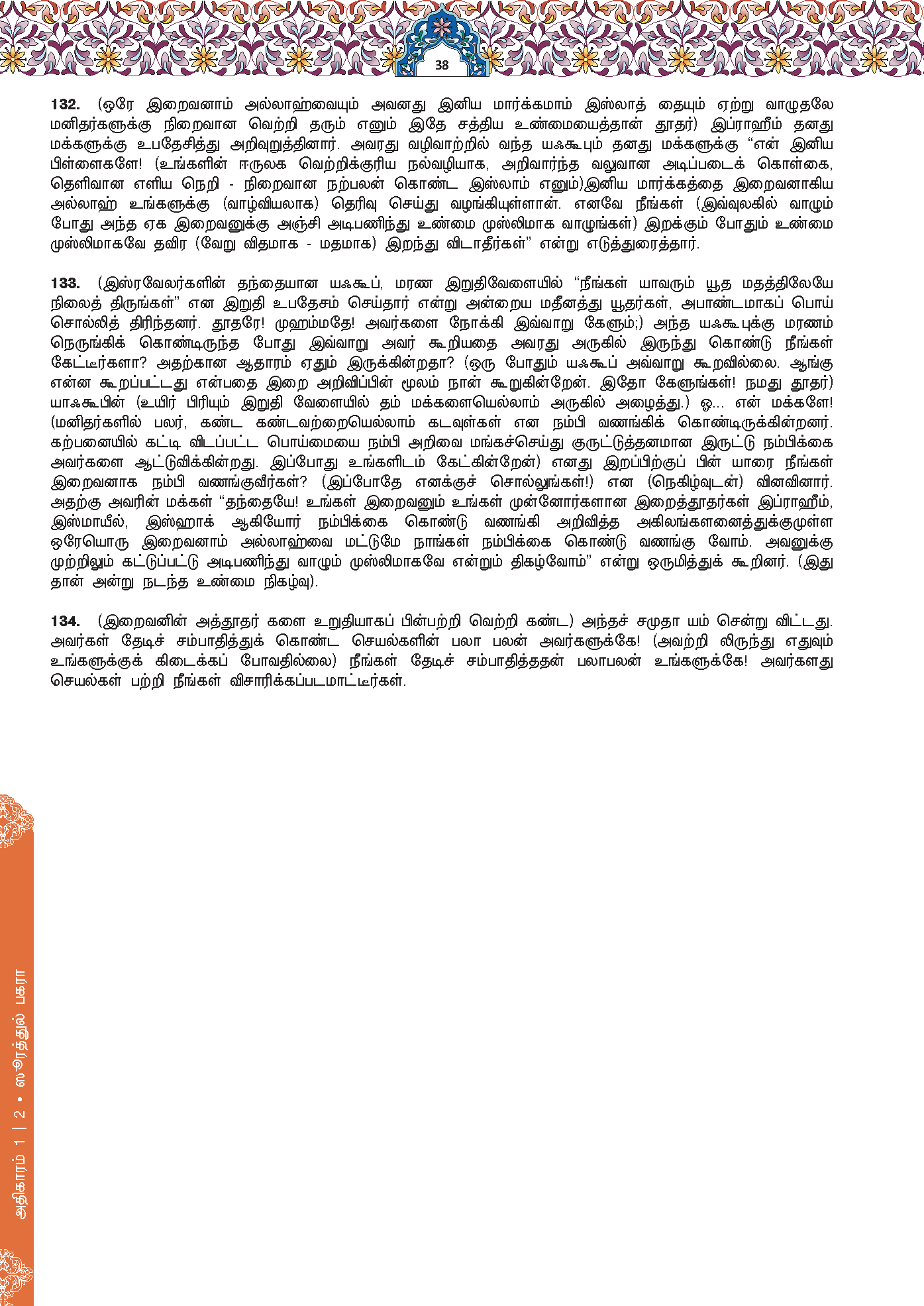 133. (Demikianlah wasiat (Nabi) Ya’qub, bukanlah sebagaimana yang kamu dakwakan itu, wahai orang Yahudi)! Apakah kamu turut hadir ketika (tanda-tanda) kematian telah datang kepada (Nabi) Ya’qub, iaitu ketika baginda bertanya kepada anak-anaknya, “Apakah yang kamu akan sembah sesudah aku mati kelak?” Mereka menjawab, “Kami menyembah Tuhanmu dan Tuhan nenek moyangmu, Ibrahim, Ismail dan Ishaq, iaitu Tuhan Yang Maha Esa, dan kami tunduk serta berserah diri kepada-Nya.”