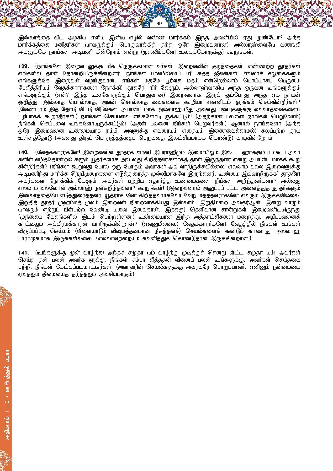 140. “Atau patutkah kamu mengatakan bahawa Nabi Ibrahim, Ismail, Ishaq dan Ya’qub berserta anak cucunya, mereka semua adalah orang Yahudi atau Nasrani, (padahal agama mereka telah pun ada sebelum adanya agama Yahudi atau agama Nasrani itu)?” Katakanlah (wahai Muhammad), “Adakah kamu yang lebih mengetahui atau Allah? Dan siapakah yang lebih zalim daripada orang yang menyembunyikan keterangan (saksi dan bukti) yang telah diberikan Allah kepadanya?” Dan (ingatlah) Allah sekali-kali tidak lalai akan apa yang telah kamu lakukan.