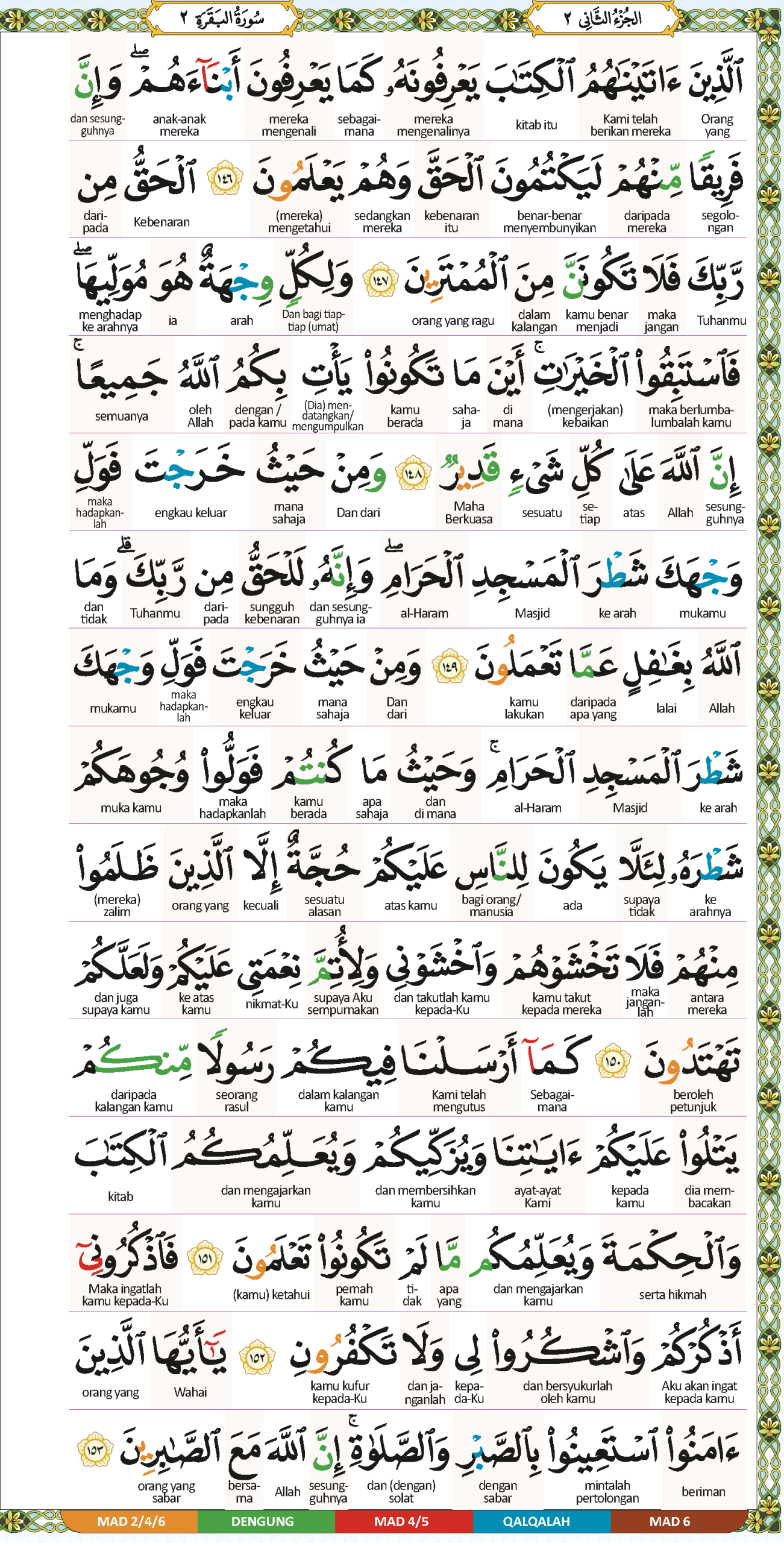 149. Dan dari mana sahaja engkau keluar (untuk mengerjakan solat), maka hadapkanlah mukamu ke arah Masjidil Haram (Kaabah), dan sesungguhnya ketentuan itu adalah benar-benar daripada Tuhanmu. (Ingatlah) Allah sekali-kali tidak lalai akan segala apa yang kamu lakukan.