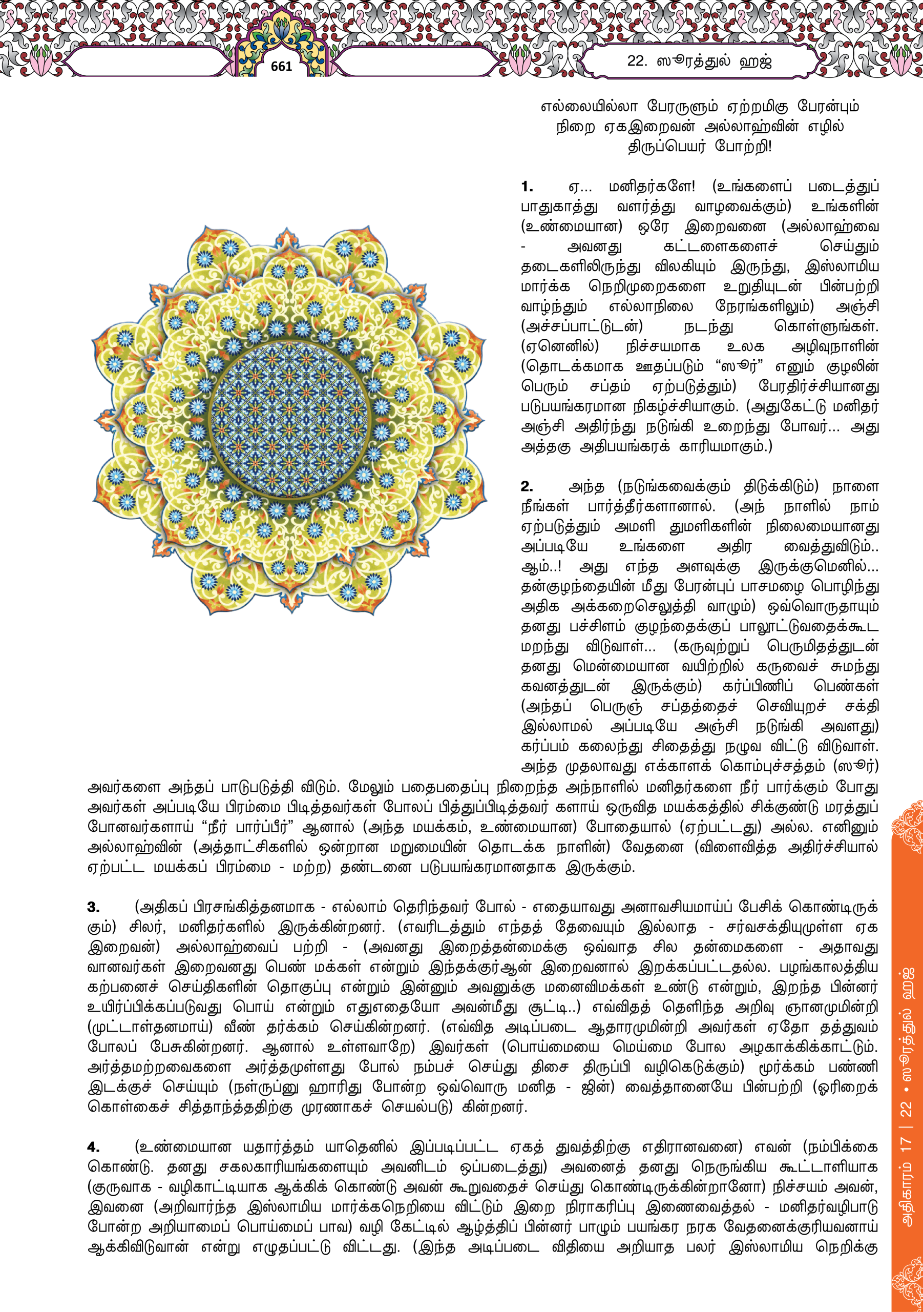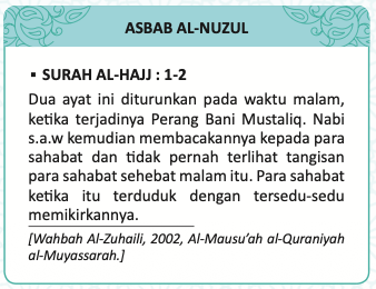 1. Wahai umat manusia, bertakwalah kepada Tuhan kamu! Sesungguhnya gempa hari kiamat itu suatu perkara yang amat dahsyat.