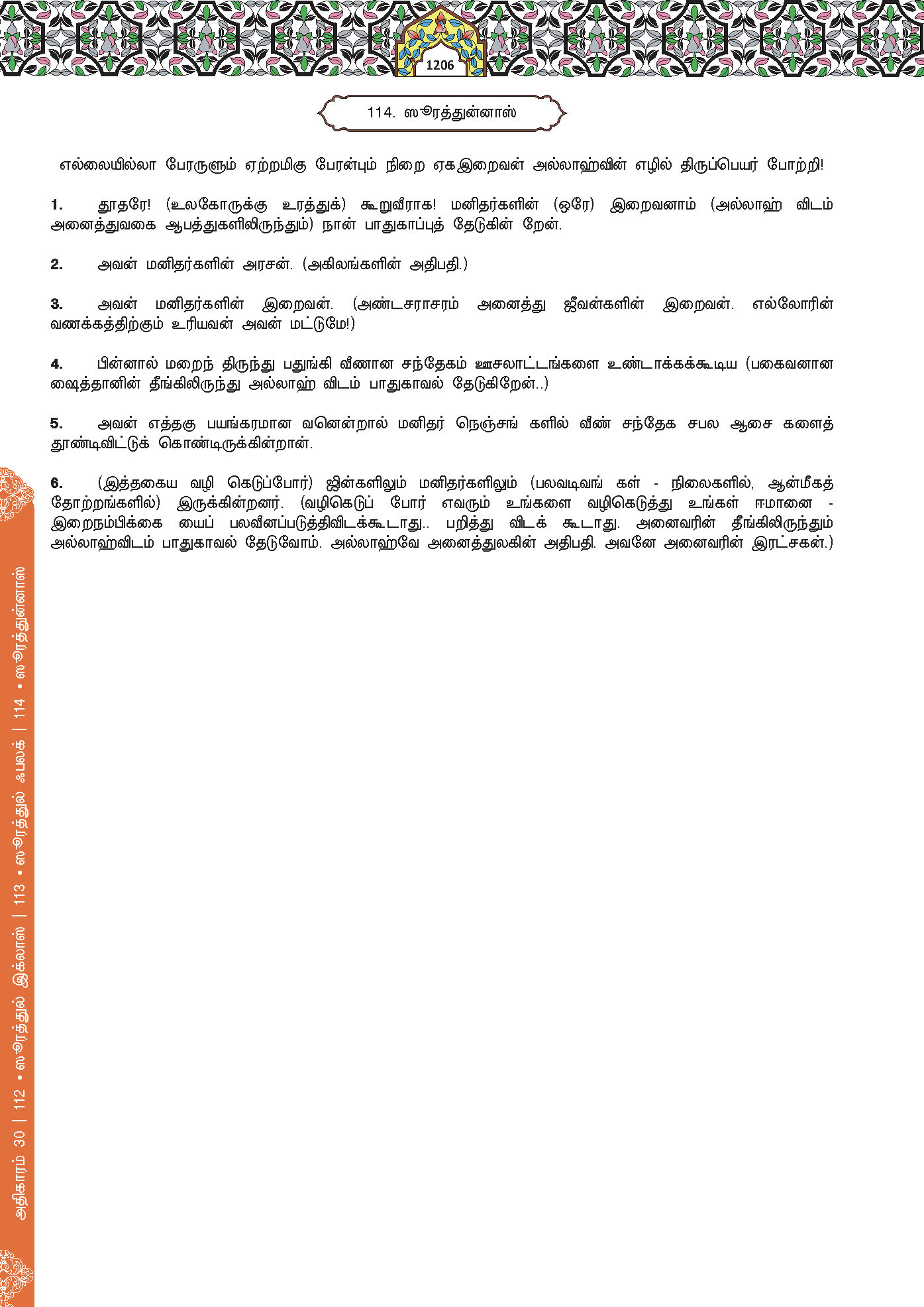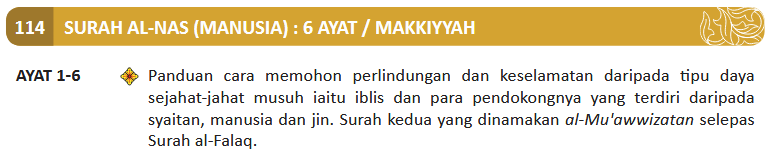 1. Katakanlah (wahai Muhammad), “Aku berlindung kepada (Allah) pemelihara sekalian manusia.”