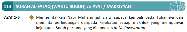 1. Katakanlah (wahai Muhammad), “Aku berlindung kepada (Allah) Tuhan yang menguasai waktu subuh.”