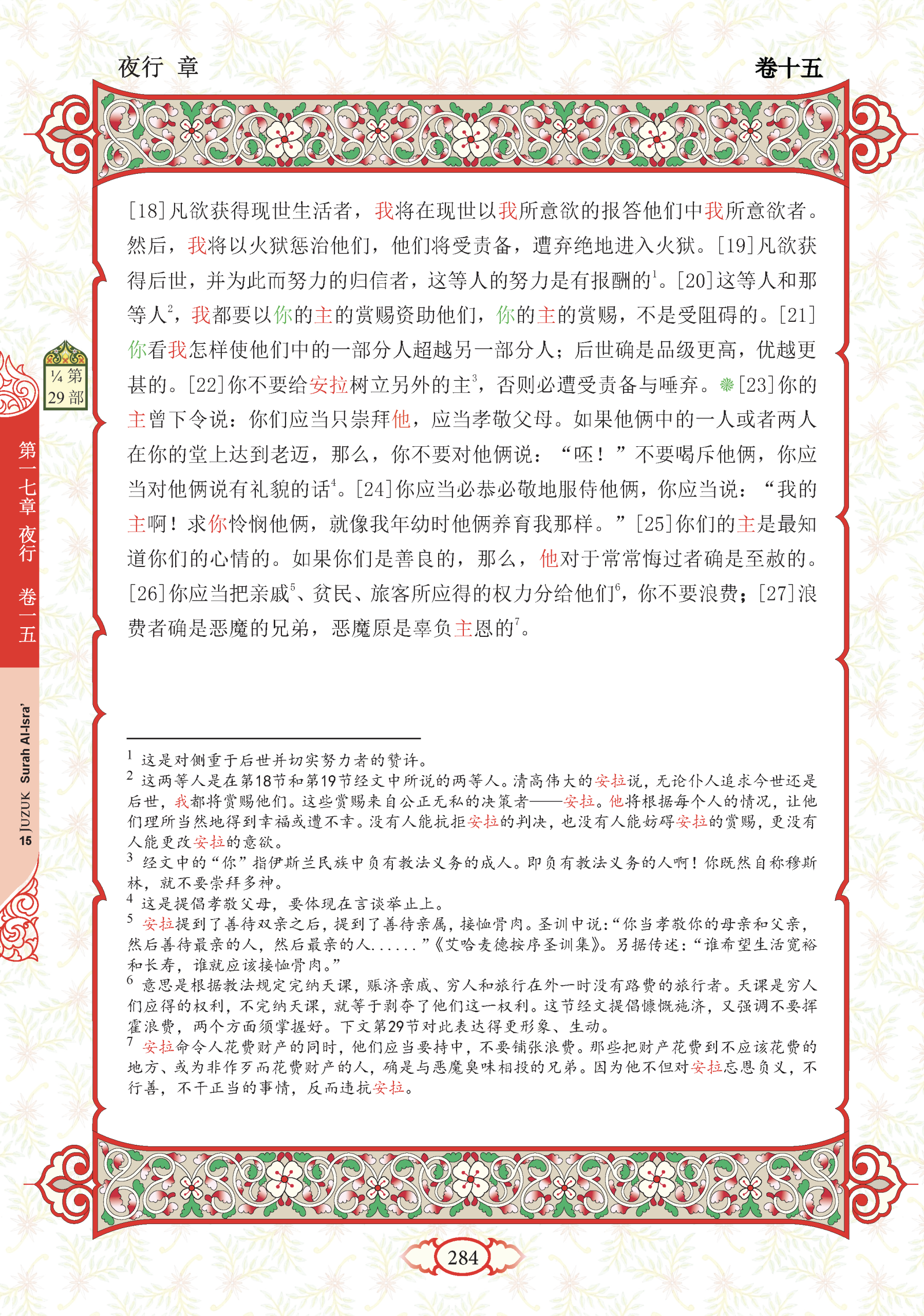 23. Dan Tuhanmu telah memerintah supaya engkau tidak menyembah melainkan kepada-Nya semata-mata dan hendaklah engkau berbuat baik kepada ibu bapa. Jika salah seorang daripada kedua-duanya atau kedua-duanya sekali sampai kepada umur tua dalam jagaan dan peliharaanmu, maka janganlah engkau berkata kepada mereka (sebarang perkataan kasar) sekalipun perkataan ‘Ah’, dan janganlah engkau menengking mereka, tetapi ucapkanlah kepada mereka perkataan yang mulia (yang bersopan santun).