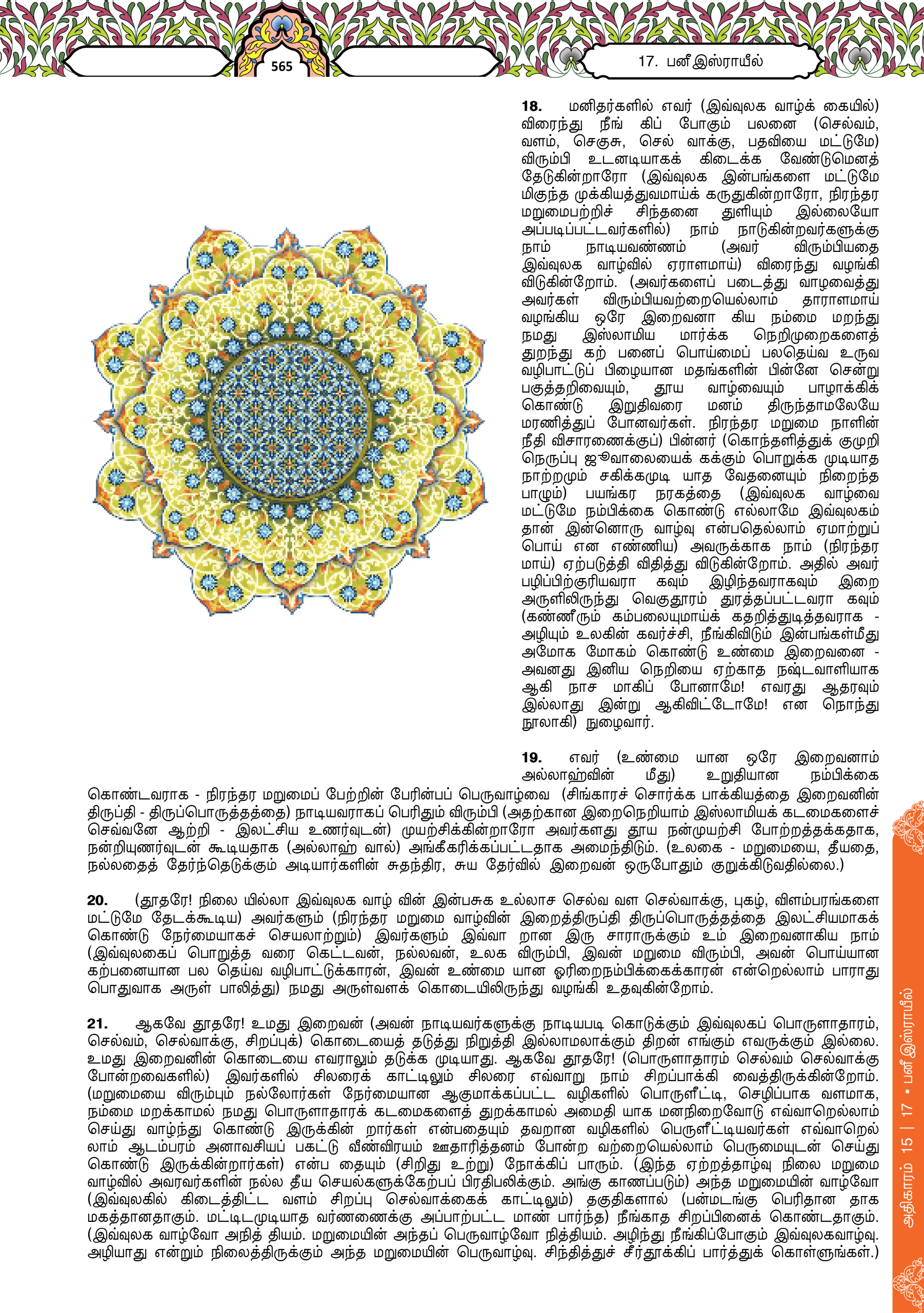 19. Dan sesiapa yang menghendaki akhirat dan berusaha (mengerjakan amalan yang baik untuk akhirat) dengan usaha yang selayaknya, sedangkan dia beriman, maka mereka yang demikian keadaannya diberi pahala terhadap amal usahanya.