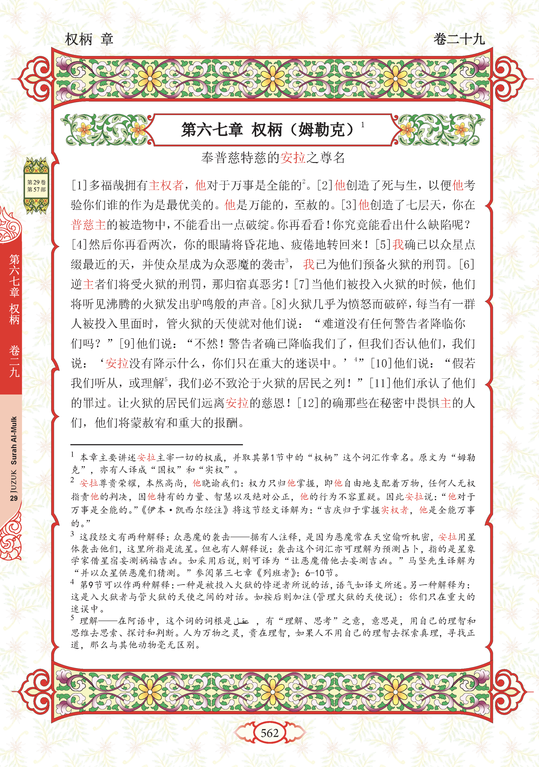 3. Dia-lah yang telah mencipta tujuh petala langit yang berlapis-lapis. Engkau tidak akan melihat pada ciptaan Allah Yang Maha Pemurah itu sebarang keadaan yang tidak seimbang. (Jika engkau ragu-ragu) maka lihatlah berkali-kali, adakah engkau melihat sebarang kecacatan atau keretakan?