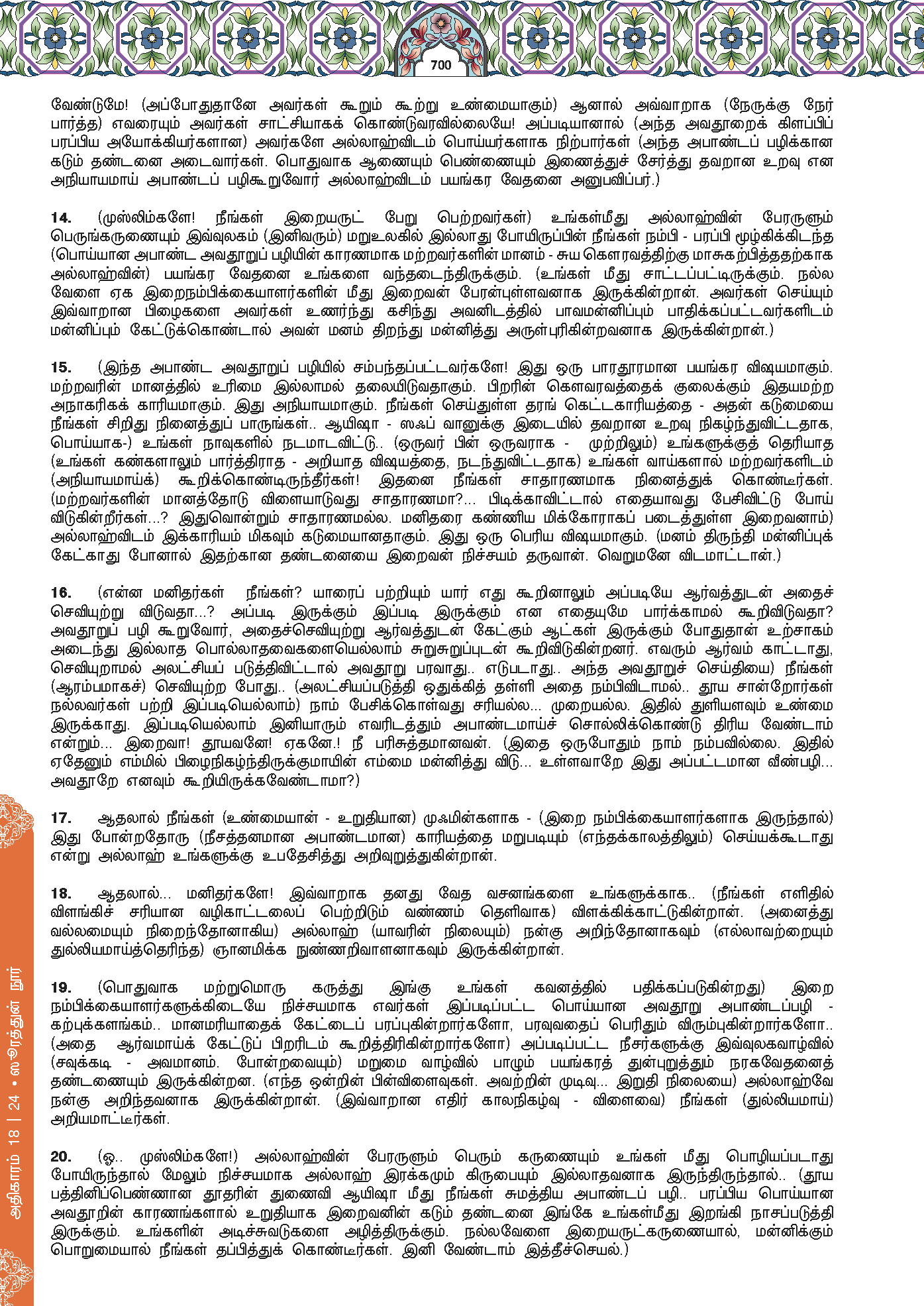 16. And when you heard it, why did you not say: “It is not for us to speak of this. Glory be to You! This is a great calumny (lie)!”