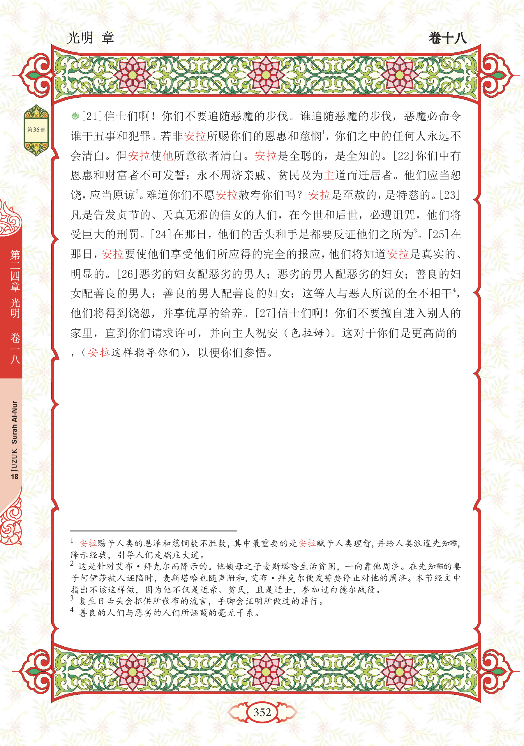 21. Wahai orang yang beriman, janganlah kamu menurut jejak langkah syaitan dan sesiapa yang menurut jejak langkah syaitan, maka sesungguhnya syaitan itu sentiasa menyuruh melakukan perkara yang keji dan mungkar. Dan kalaulah tidak kerana limpah kurniaan Allah dan rahmat-Nya kepada kamu, nescaya tidak ada seorang pun antara kamu menjadi bersih daripada dosanya selama-lamanya, tetapi Allah membersihkan sesiapa yang dikehendaki-Nya dan Allah Maha Mendengar lagi Maha Mengetahui,