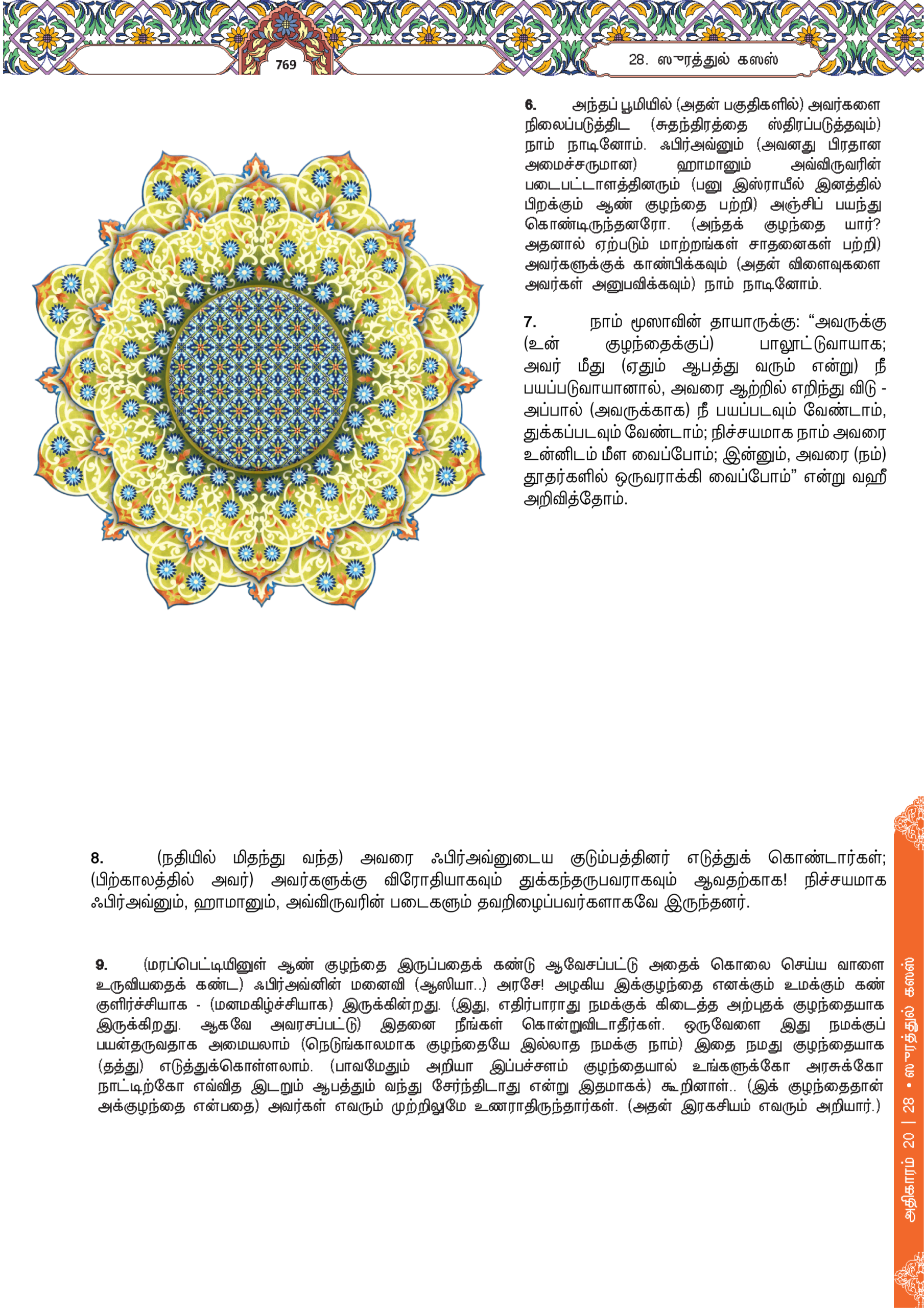 6. Dan Kami hendak memberi mereka kedudukan yang kukuh di negeri itu, serta hendak memperlihatkan kepada Firaun dan Haman bersama-sama tentera mereka apa yang mereka bimbangkan daripada golongan yang tertindas itu (tentang seorang bayi yang bakal lahir dalam kalangan mereka).