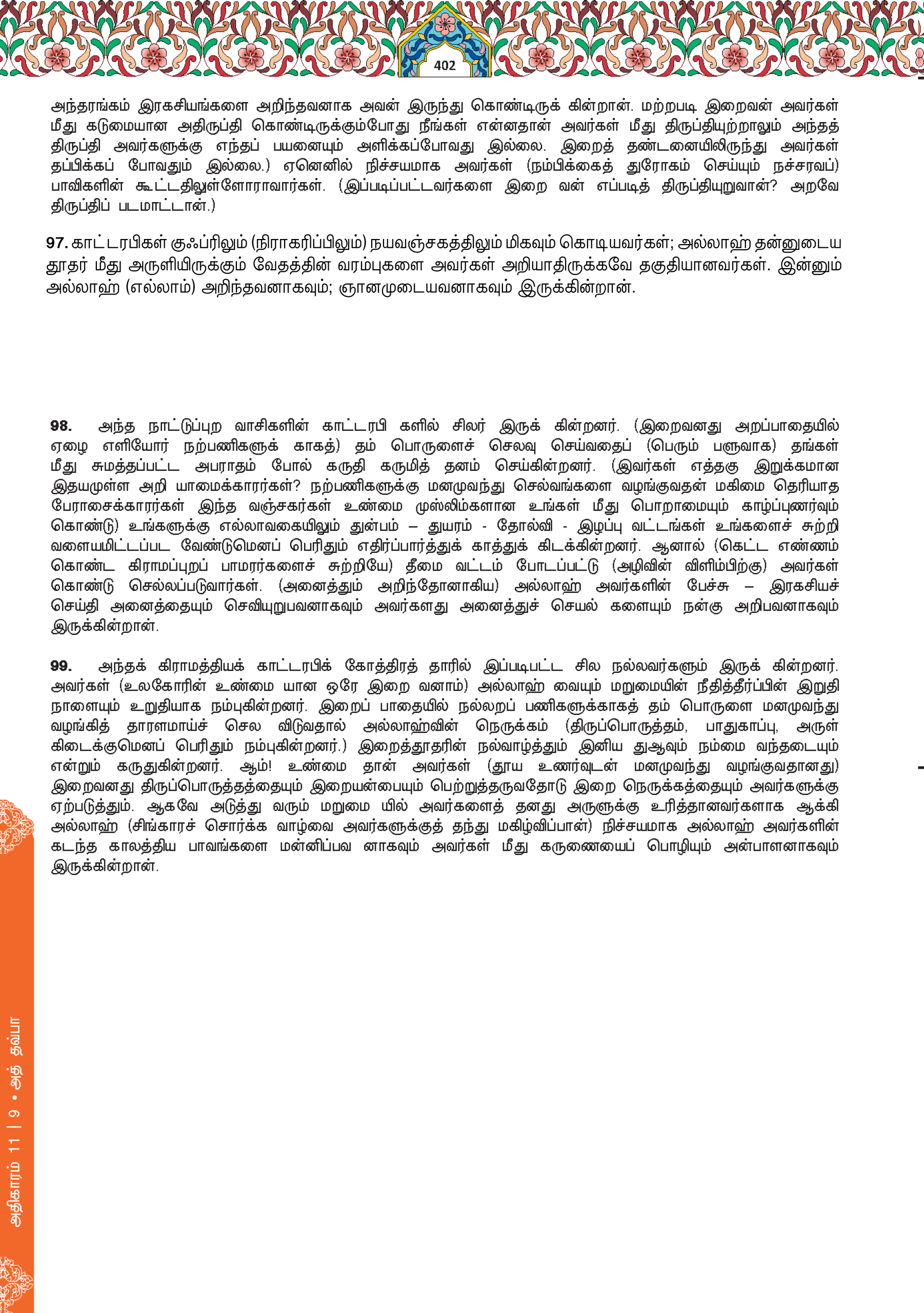 98. And some of the Bedouins regards what they spend (in Allah’s cause) as a fine, and watch for calamities for you on them be the calamity of evil and Allah is Hearing, Knowing.