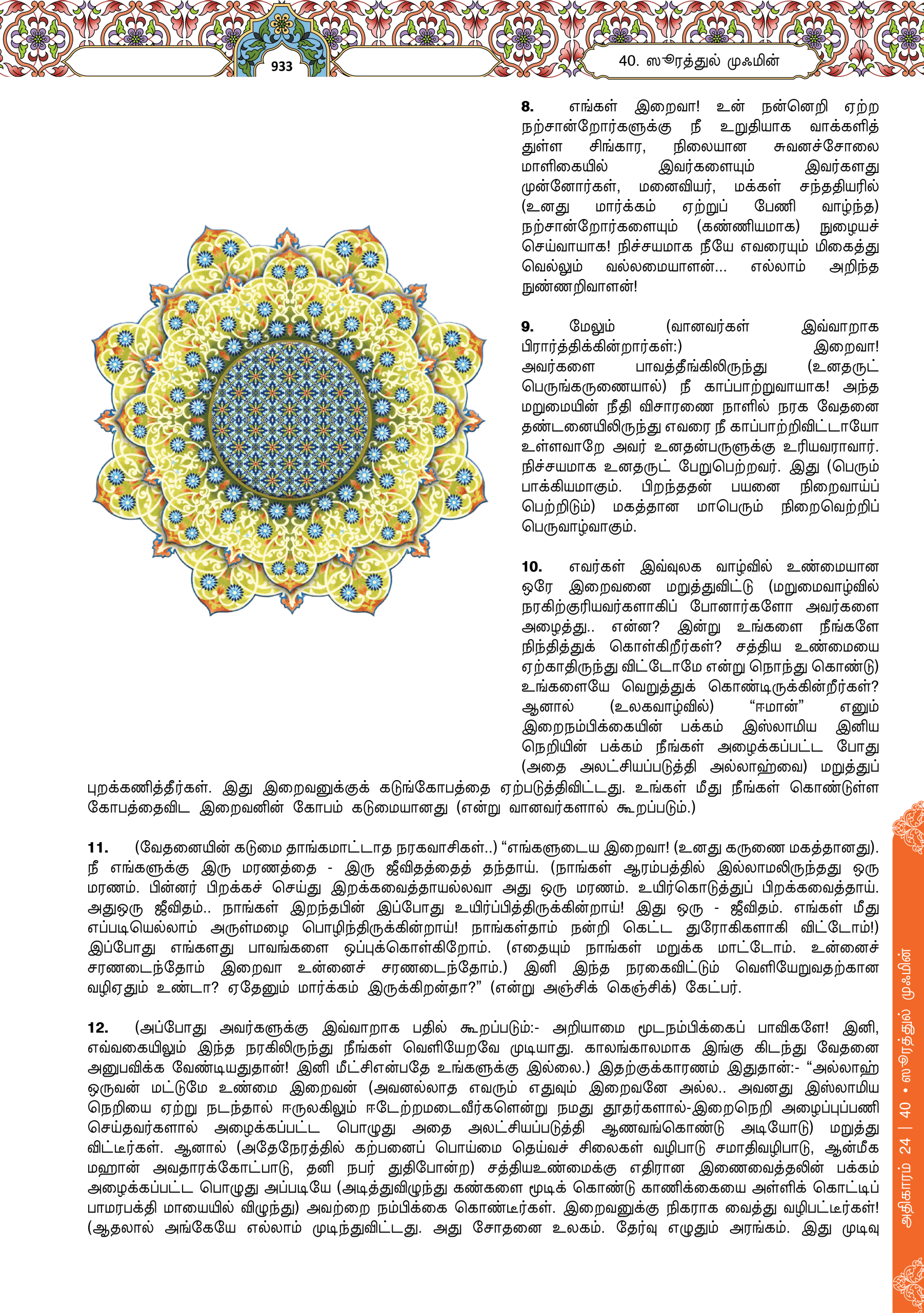 8. “Wahai Tuhan kami! Masukkanlah mereka juga ke dalam Syurga ‘Adn yang Engkau telah janjikan kepada mereka dan (masukkanlah bersama-sama mereka) orang yang daripada kalangan nenek moyang, isteri-isteri dan keturunan mereka. Sesungguhnya Engkau-lah jua Yang Maha Perkasa lagi Maha Bijaksana.”