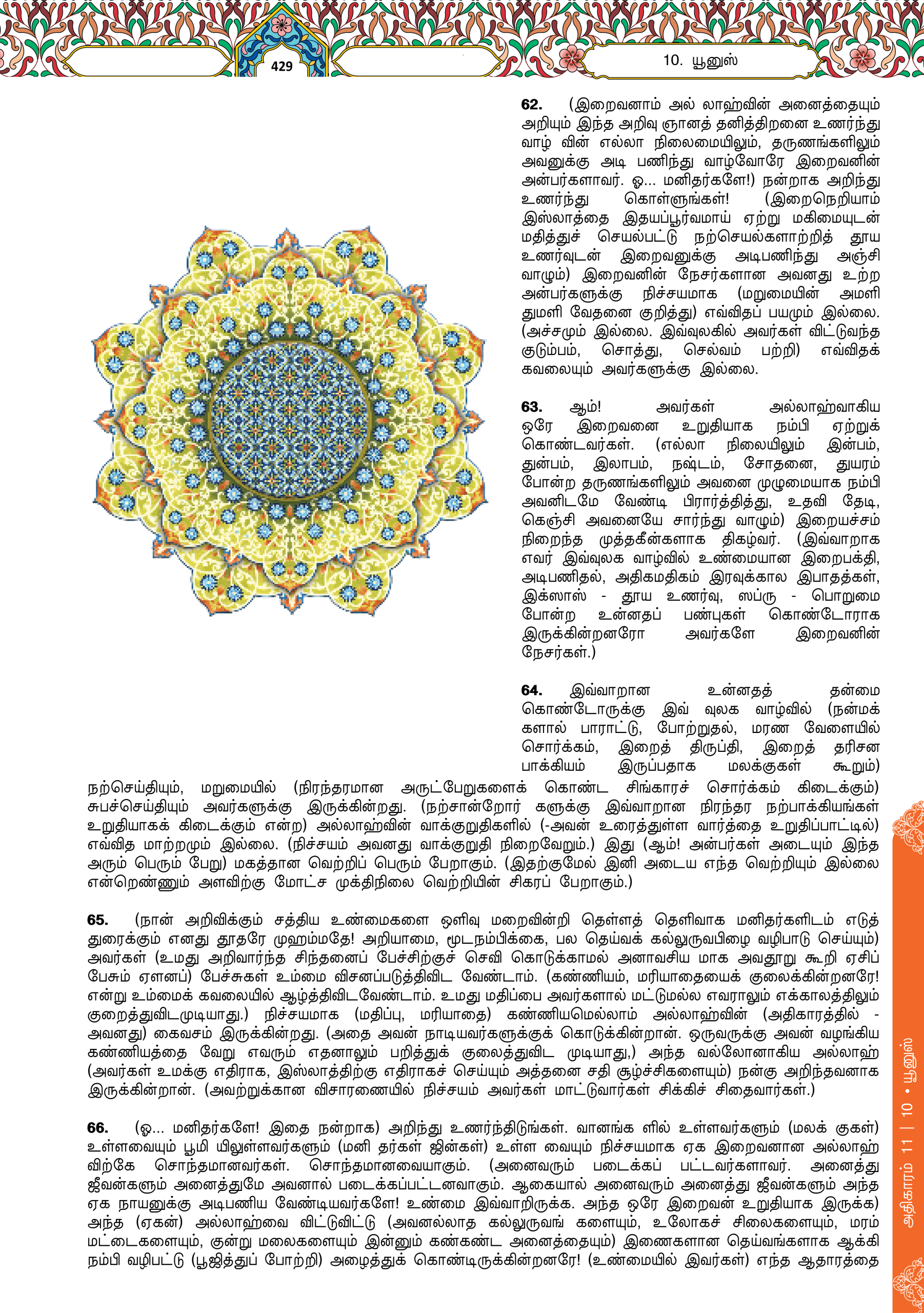 64. For them are glad tidings in the life of this world and in the Hereafter. There is no alteration in the words of Allah. This is the great attainment.