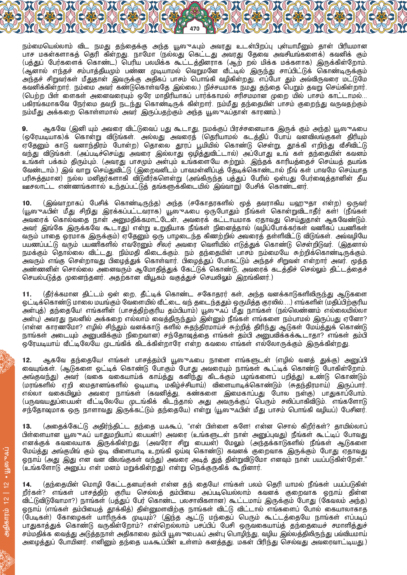 9. “Bunuhlah Yusuf atau buanglah dia ke suatu tempat (yang jauh) supaya perhatian dan kasih sayang bapa kamu tertumpu kepada kamu semata-mata dan supaya kamu sesudah itu menjadi orang yang baik dan berguna (setelah bertaubat).”