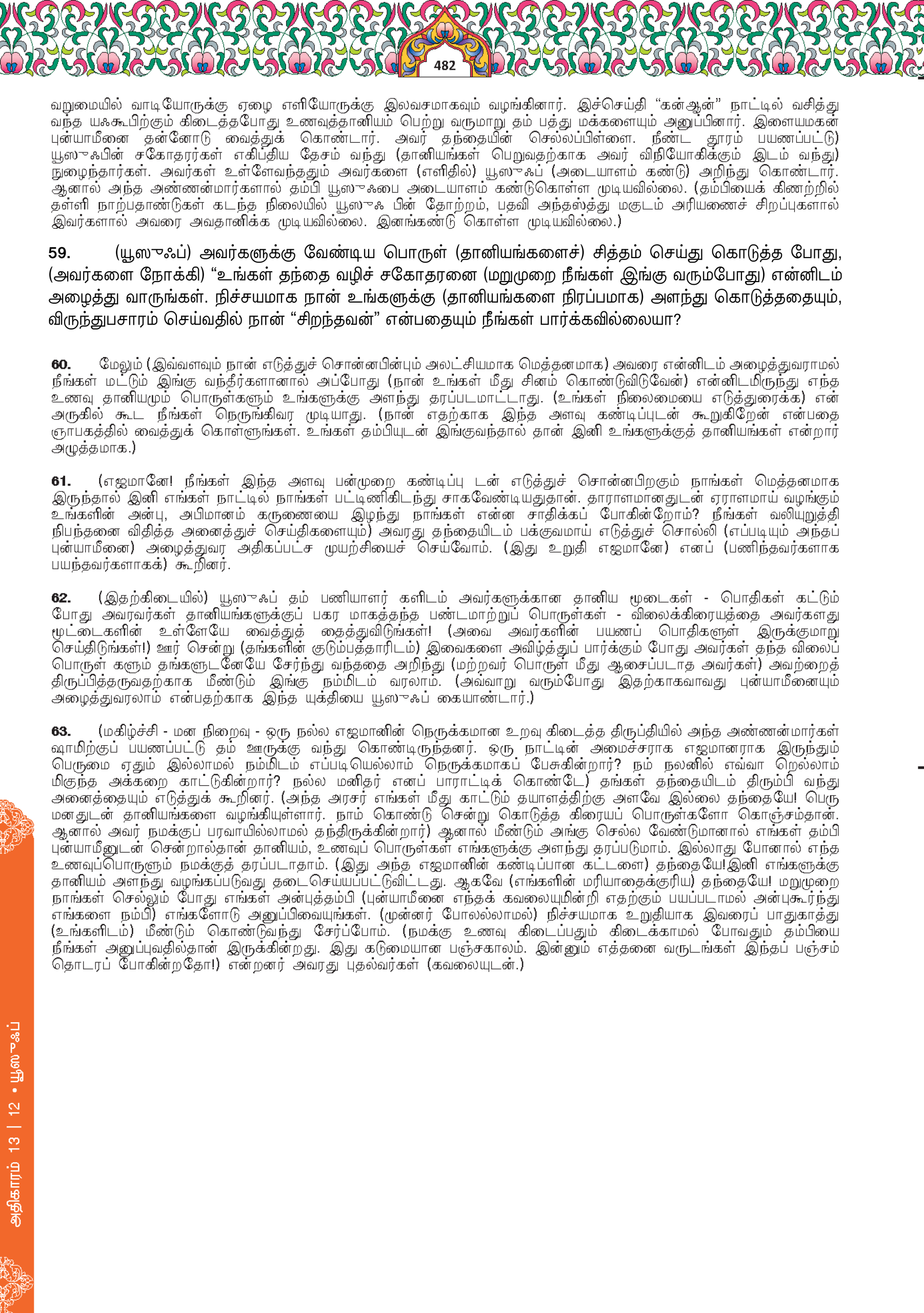 59. Dan ketika (Nabi) Yusuf menyediakan bekalan untuk mereka (makanan), dia berkata, “(Pada kali yang lain) bawalah kepadaku saudara kamu yang sebapa (Bunyamin). Tidakkah kamu melihat, bahawa aku menyempurnakan sukatan (bekalan makanan kamu) dan aku adalah sebaik-baik penerima tetamu?